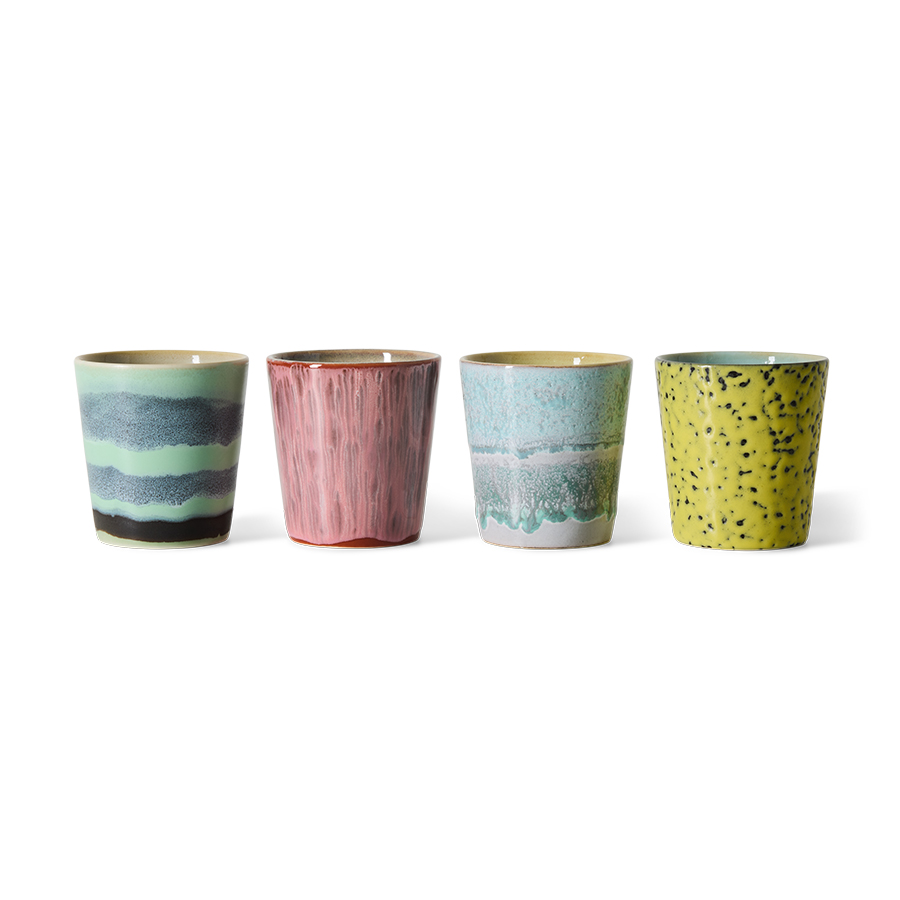 This set of coffee mugs celebrates the beauty of variation. Each mug features its own expressive glaze, where layered colours and flowing textures turn every sip into a small visual moment. The familiar shape offers a comfortable grip, while the artistic finishes bring an unexpected edge to your daily coffee ritual. Designed to mix effortlessly on the table, yet distinctive enough to stand on their own.