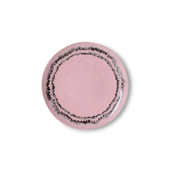 A small plate with a soft yet expressive presence. This dessert plate from the 70s ceramics collection is perfect for serving sweets, pastries or small bites. The Bubble finish features a gentle pink glaze framed by a darker, organic ring, creating a subtle tension between softness and contrast. Playful, warm and slightly unexpected—ideal for adding a light accent to your table setting.