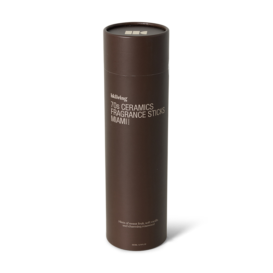 Part of our 70s ceramics collection, combining nostalgic style with subtle scent. Let fruity notes fill the air with vibrant zest. As the fragrance settles, a warm, creamy vanilla emerges, evoking the luxurious feel of Miami's beaches. The enchanting aroma of rosewood adds a sophisticated depth that captures the city's rich cultural charm. This balanced fragrance brings the vibrant energy and relaxed aesthetic of Miami into your home.