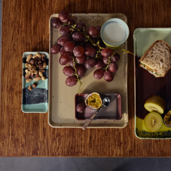Raw and refined at once. The Grit large tray combines a soft base colour with scattered speckles that add texture and contrast. Its generous size makes it ideal for serving or as a bold centrepiece on the table or kitchen counter.
