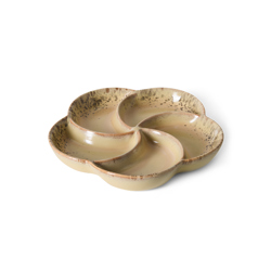 Designed for sharing, styled like an object. This snack tray features a sculptural, segmented form that naturally invites variety on the table. The Grit finish adds a raw, speckled texture with earthy undertones, giving the piece a grounded, tactile feel. Ideal for snacks, dips or small bites, but just as strong as a decorative centerpiece.