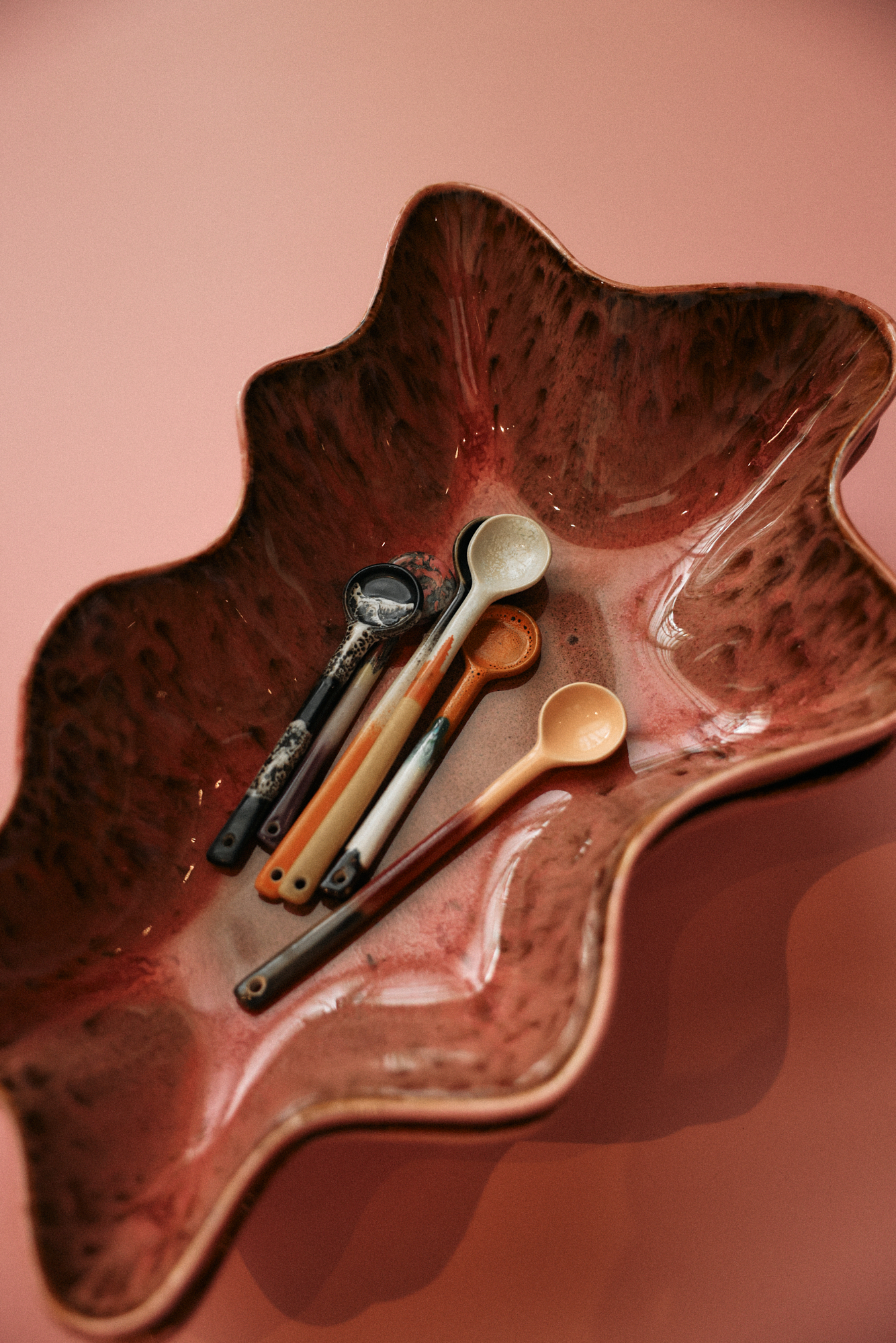 For those who enjoy that last bit of foam in their latte cup, or simply use sugar or milk. The 70's ceramic spoons are not only convenient but also playfully coloured. Available in a set of four, each with its own unique finish.