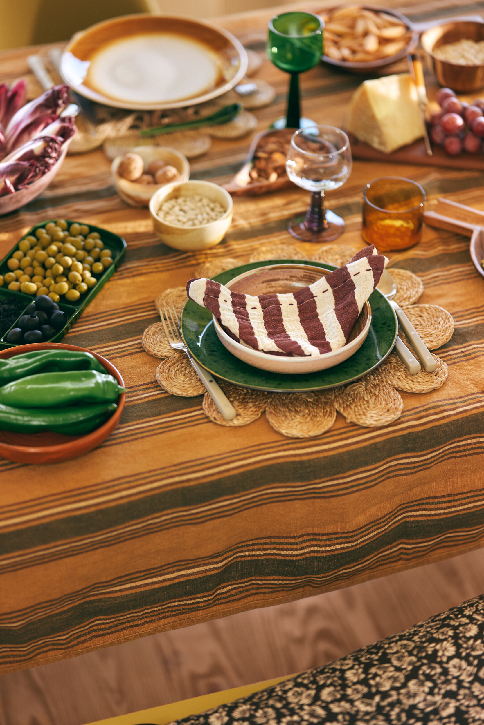 Made of 100% cotton and specially designed to add some beloved retro vibes to a table setting. Celebrating the joy of meeting family and friends over a good meal. Available in different colour and print options, as a set of 2, so you can mix and match.