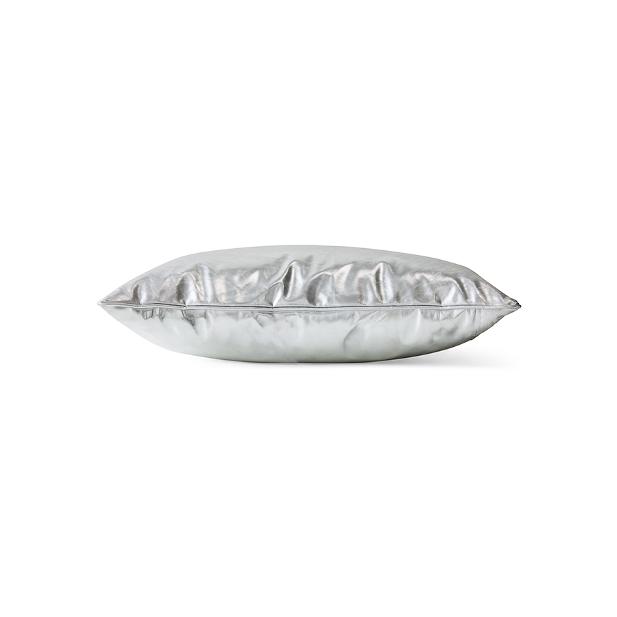 Reflective and unexpected, this metallic-look cushion plays with light throughout the day. Its softly crinkled surface shifts between subtle sheen and bold contrast, adding an almost sculptural quality to your seating area.