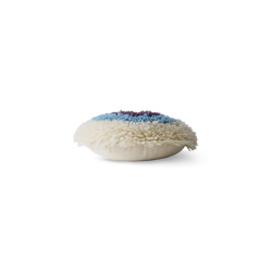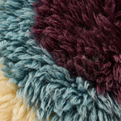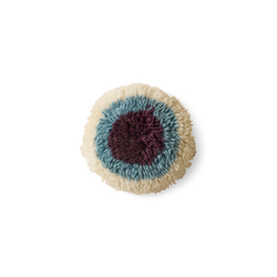 A circular statement cushion rich in texture and colour blocking. More object than accessory, its layered fibres and playful form add warmth, depth and a sense of handcrafted charm to your interior.
