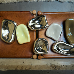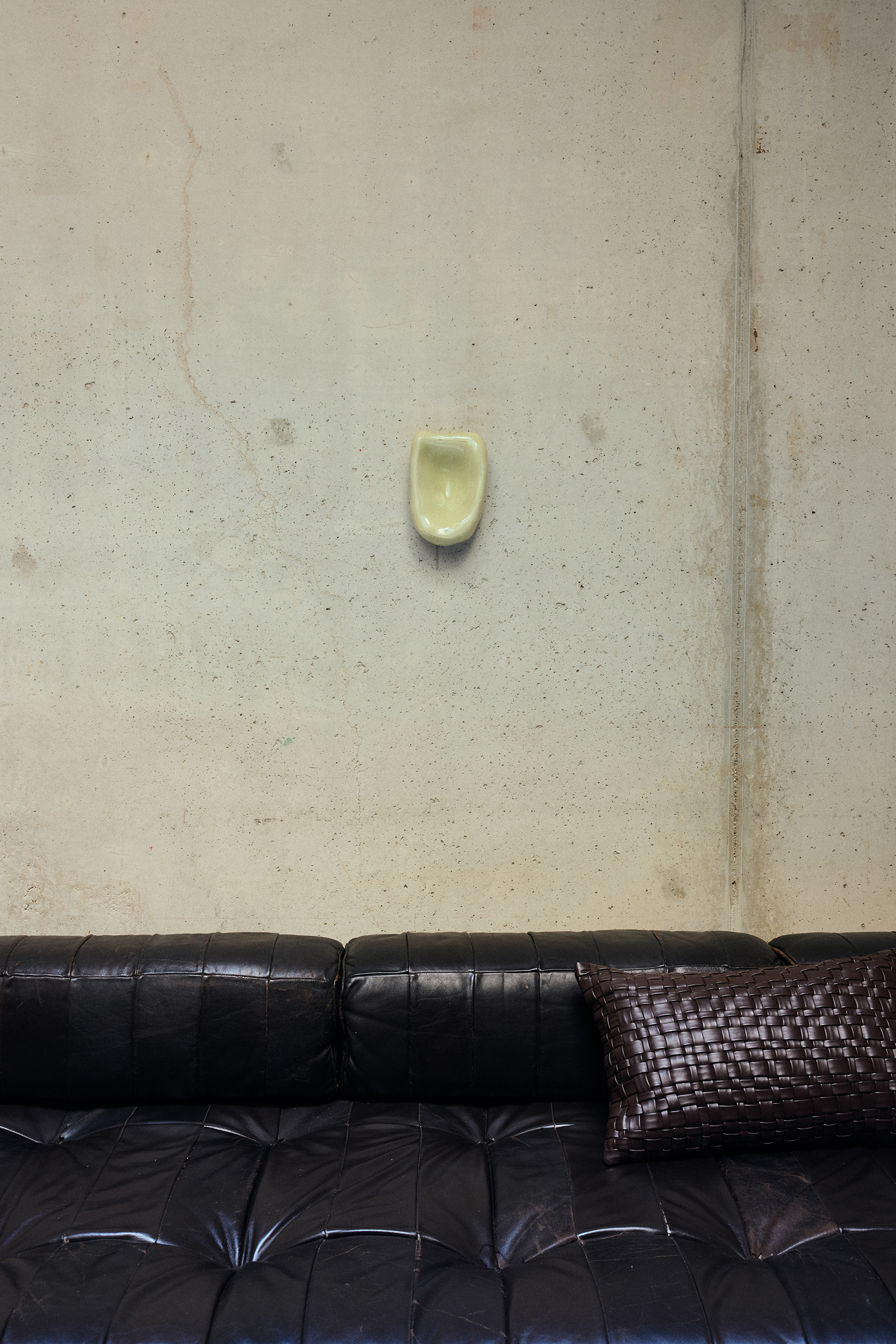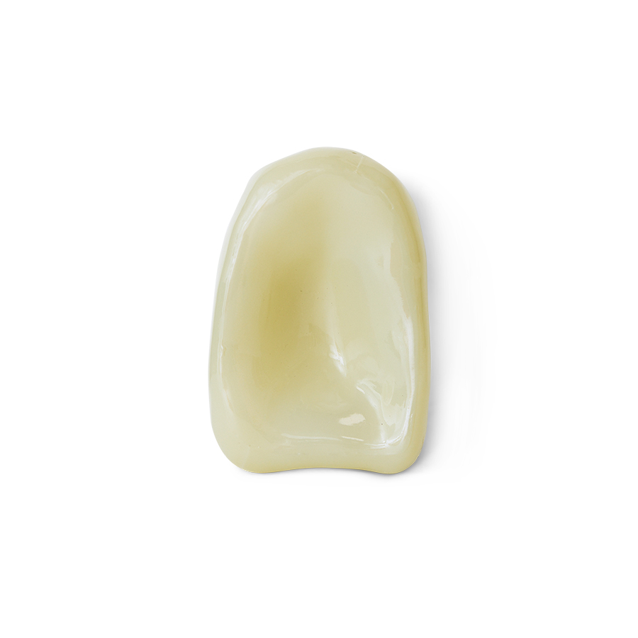 This cream-coloured glass sculpture combines a fluid outline with a soft, stone-like hue. The translucent surface reflects its surroundings gently, creating visual interest without distraction. Modern and restrained, it functions as a sculptural accent that brings rhythm and clarity to any interior.