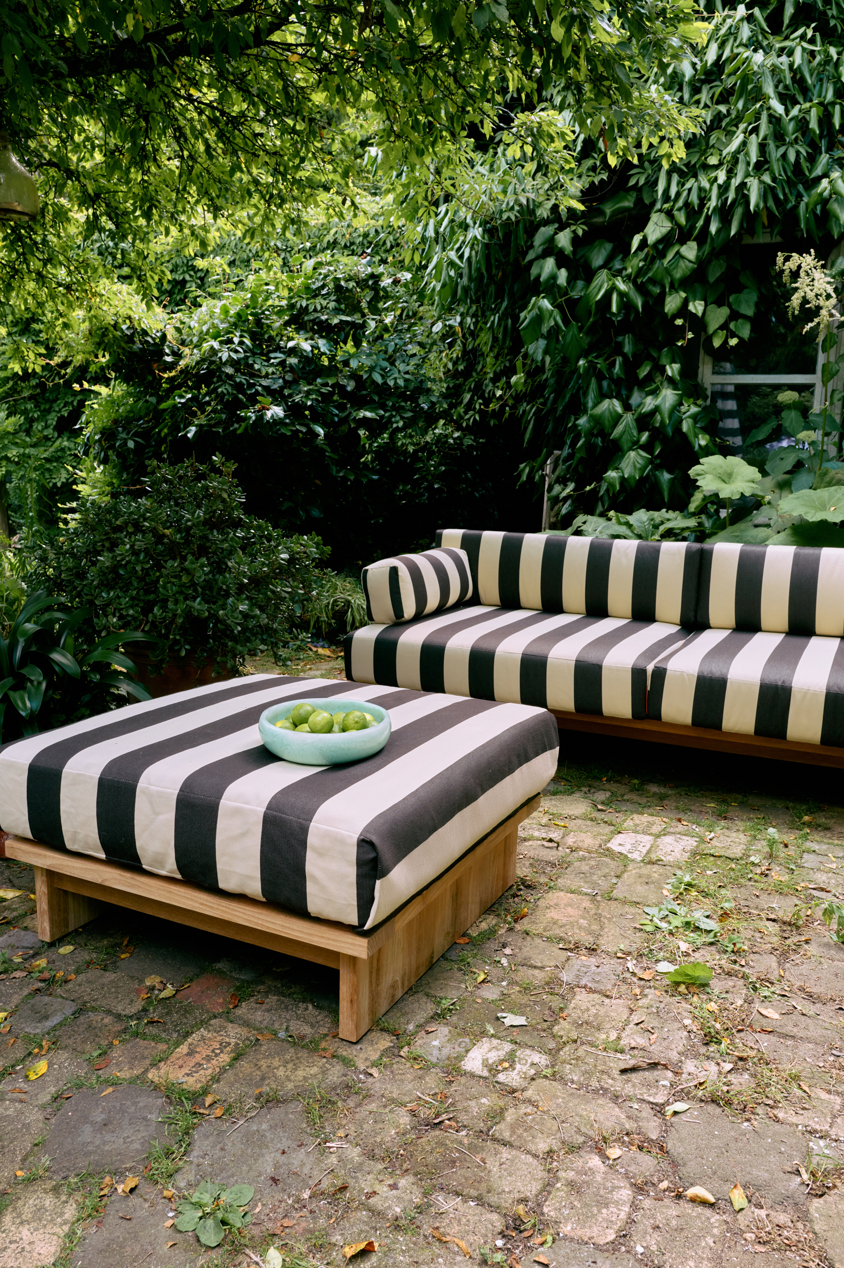 An easy addition, a natural extension. This outdoor hocker completes your lounge setup—whether used as a footrest, side table or extra seat. Crafted from the same clean teak frame and finished with the same comfy cushions, it blends in effortlessly while adding flexibility. Designed to age beautifully, just like the rest of the series.