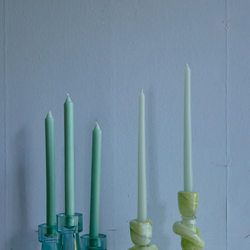 Make a bold yet elegant statement with this large knotted candle holder. Crafted from fresh green glass with a gentle swirl of cream, its twisted shape creates visual movement from every angle. An artistic piece that glows as much as it decorates.