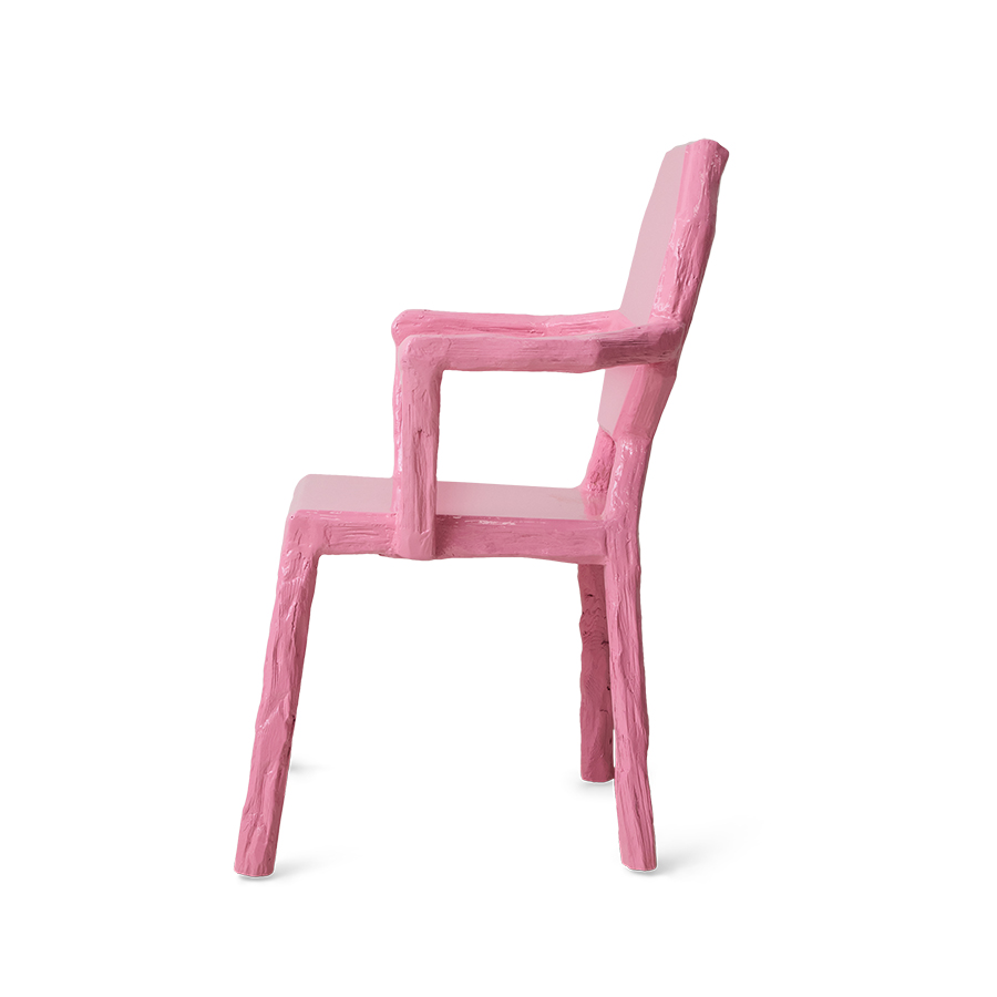 Teun Zwets doesn’t design politely — and that’s exactly why we wanted to work with him. His approach is unfiltered: loud colours, unapologetic gloss, rough materials that look like they’ve been dragged straight out of the workshop. There’s no ego in the work, but there is attitude. Together we pushed furniture into a new territory, one where a chair or accessory doesn’t just blend in — it leads. These pieces behave more like characters than static objects.