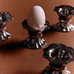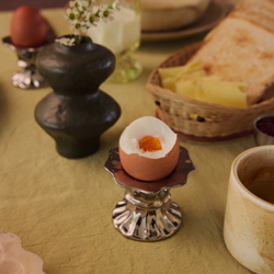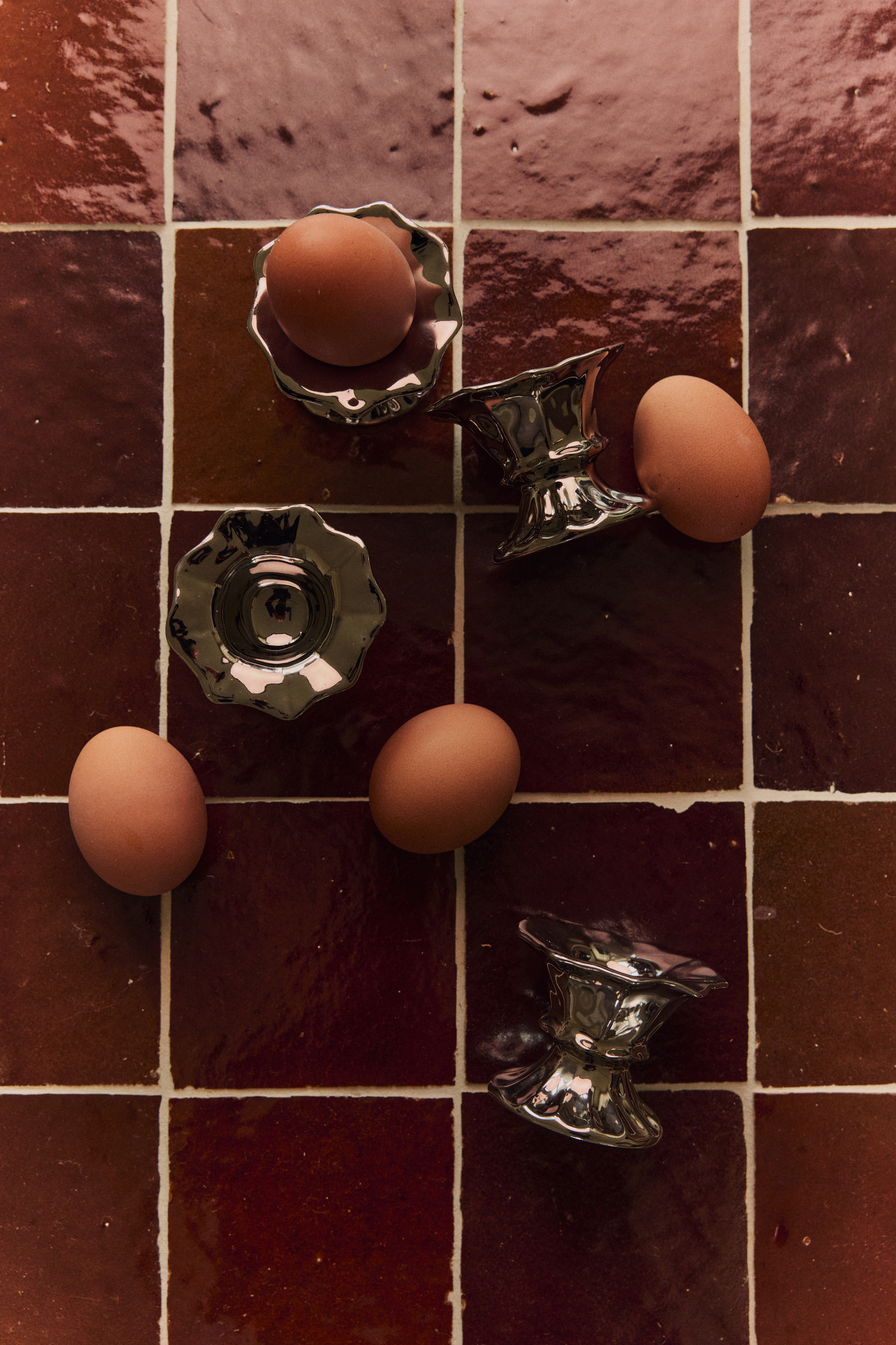 A timeless table detail, reimagined. This set of four egg cups is crafted from ceramic and finished in a bold chrome glaze—classic in shape, modern in attitude. Minimal, reflective, and just a little unexpected, they bring a polished twist to your breakfast table.