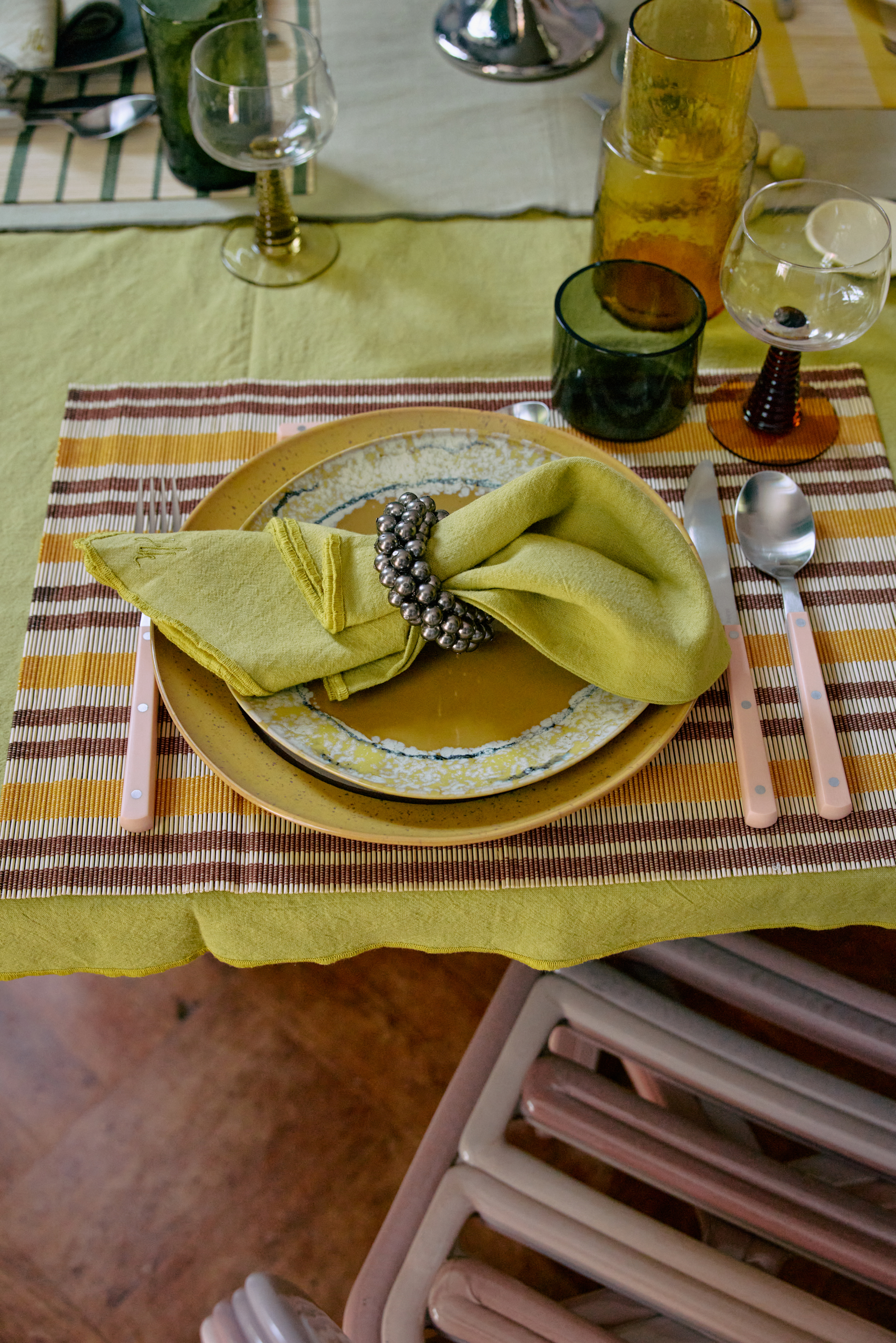 More than just a table detail. This metal napkin ring is made from a cluster of rounded beads, forming a bold, sculptural loop. Its dark, polished finish adds contrast and texture to any table setting—elevating even the simplest linen with a touch of edge.