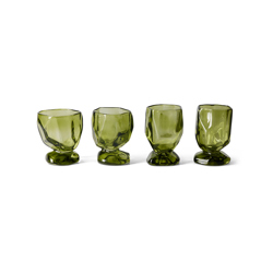 These wine glasses are designed to be felt as much as they are seen. Deliberately weighty in hand, their distinctive form turns a simple glass into a considered object—something you notice, hold onto, and return to. Gem-like elements subtly reappear in the low foot and within the bowl itself, creating a visual rhythm that ties the piece together. Confident, unconventional and tactile, this set brings presence to the table without losing its sense of ease.