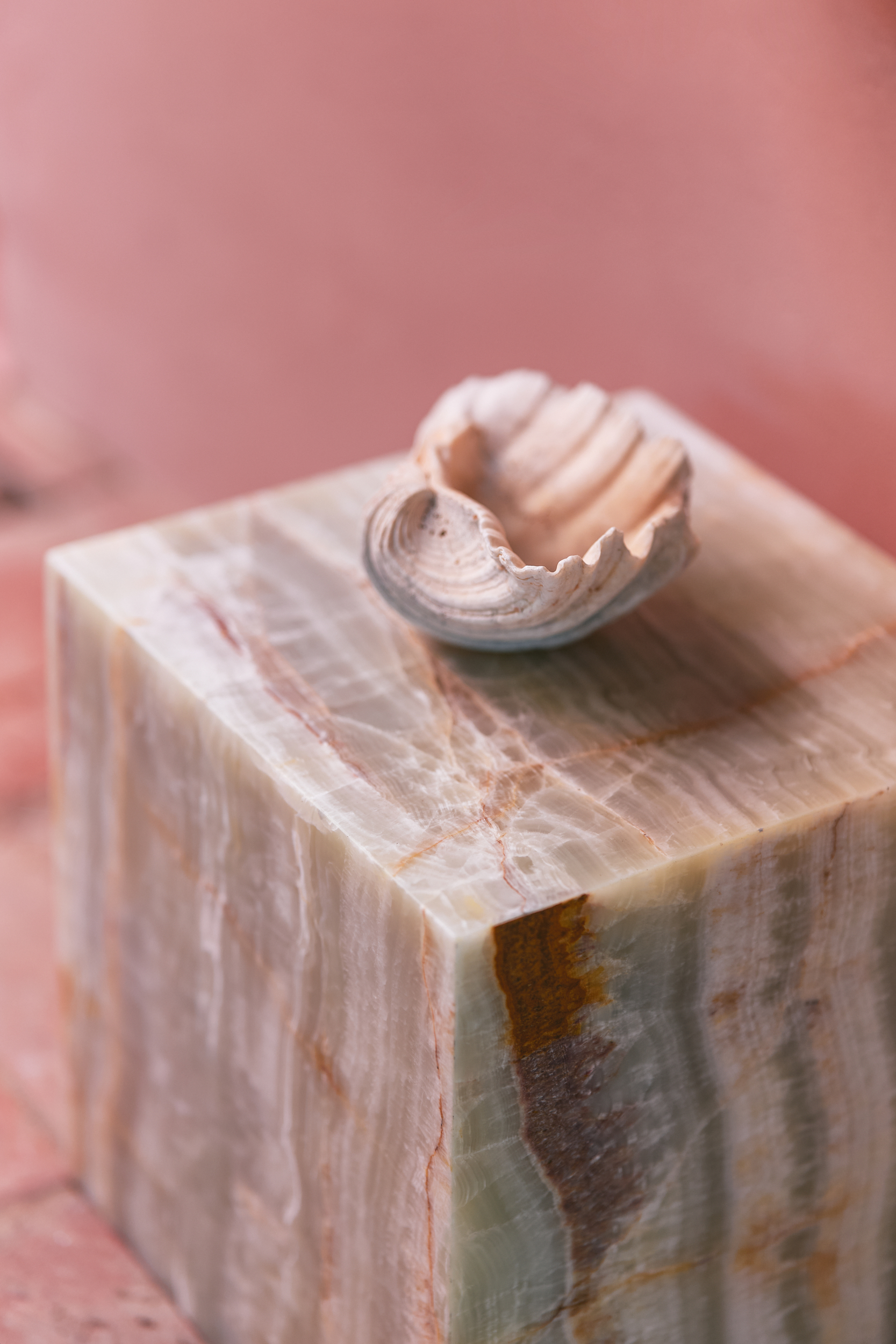 Hollywood Regency is all about classic elegance and onyx marble fits the bill perfectly. The soft colour of the mineral green marble combines perfectly with both gold and chrome metal details. Make a stylish side table or column in your home with this solid marble block.