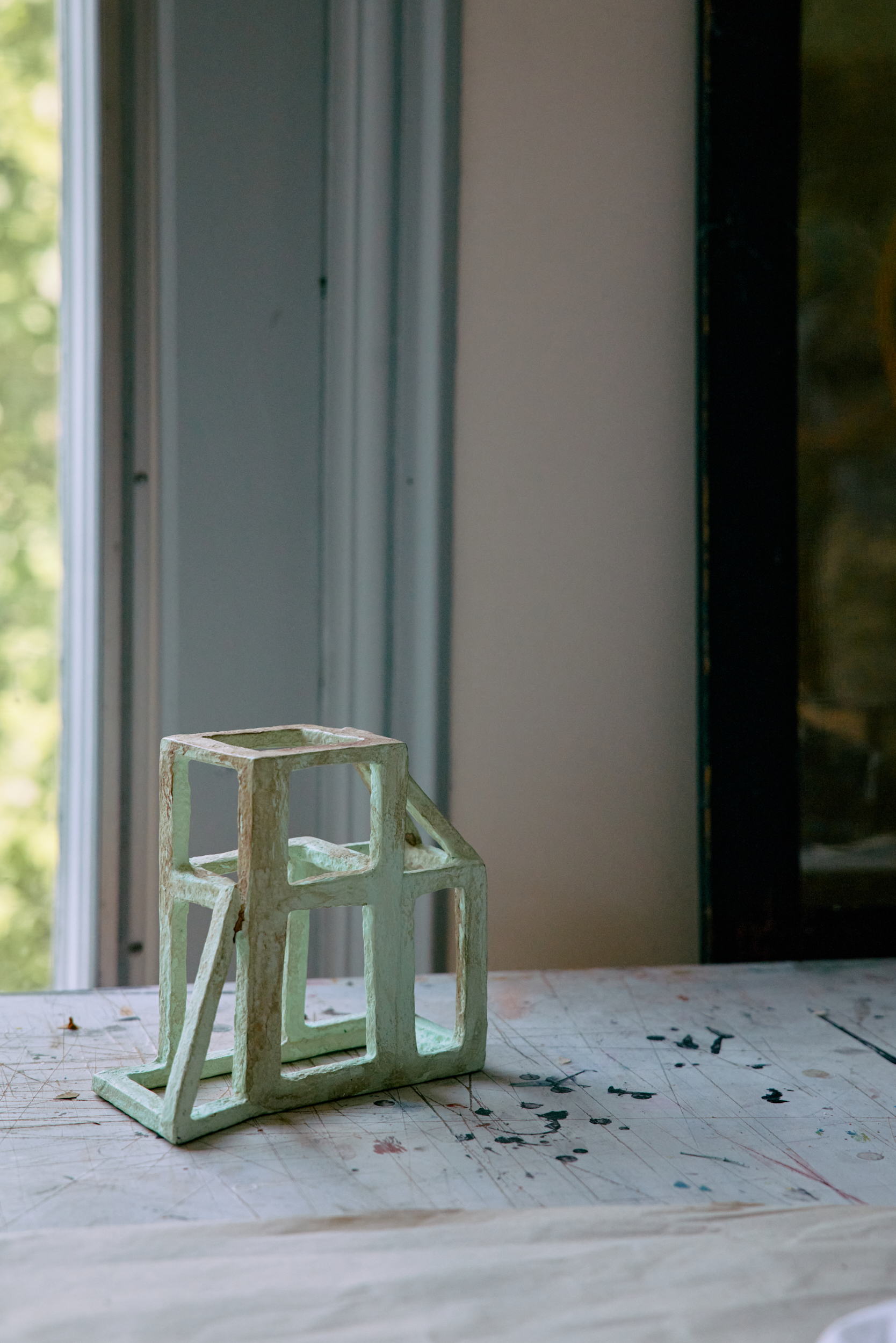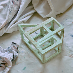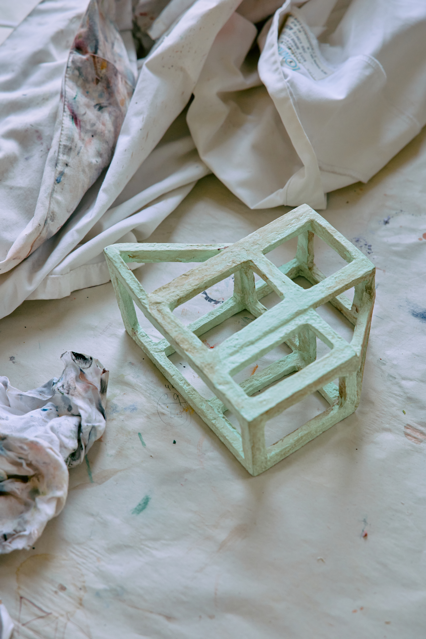 Built from paper-mâché and shaped with an architectural edge, this sculpture embodies creative exploration in its rawest form. A tactile statement piece with sculptural lines and artistic tension—ideal for anyone who finds beauty in the unfinished.