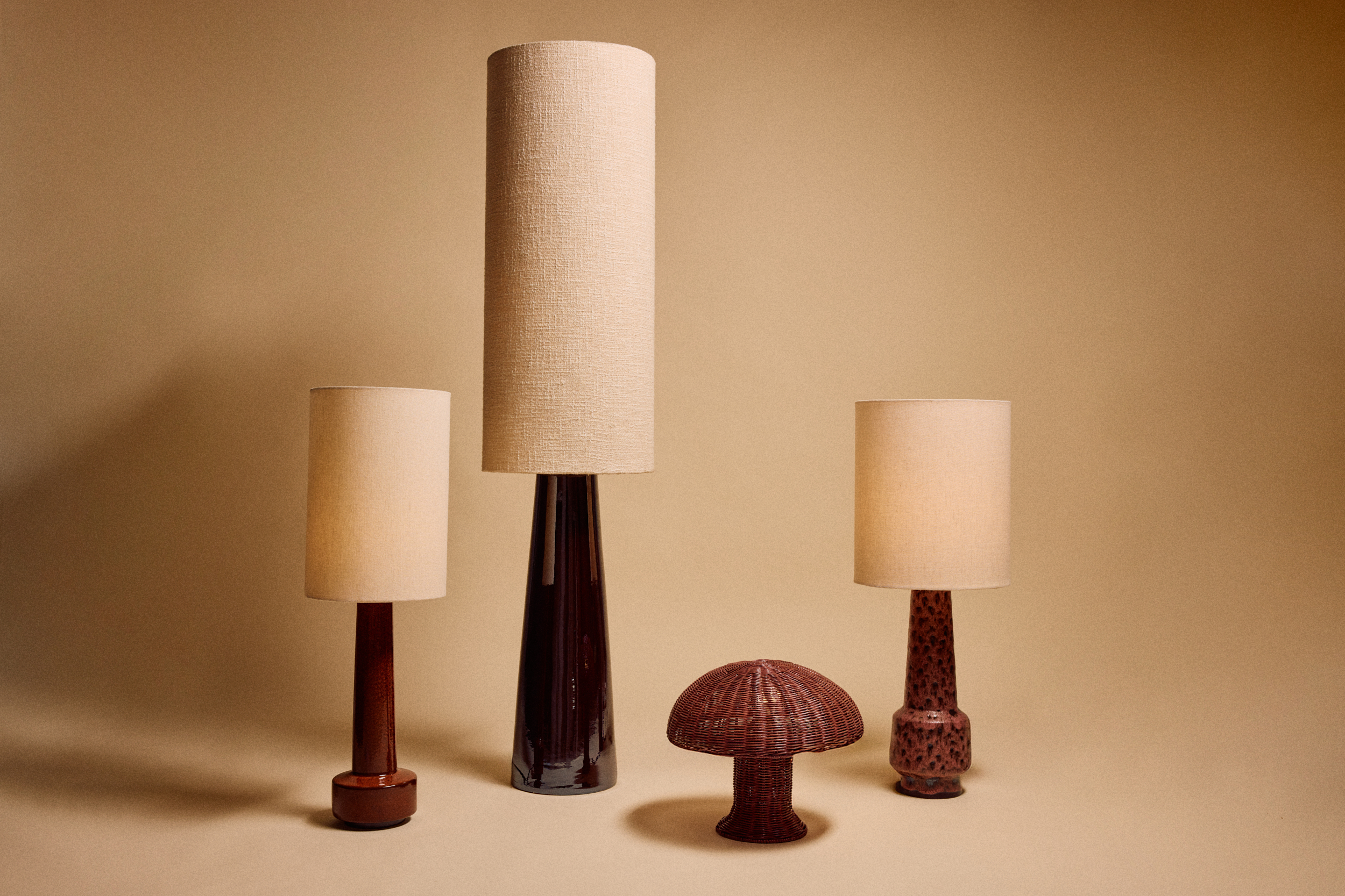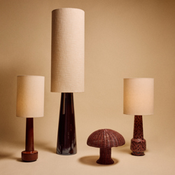 Bold shape, soft finish. This ceramic lamp base stands out with its matte glaze in plum tones—a refined mix of red, pink, and purple that shifts subtly in the light. Its wider silhouette gives it a sculptural presence, while the muted surface keeps the look grounded and sophisticated.