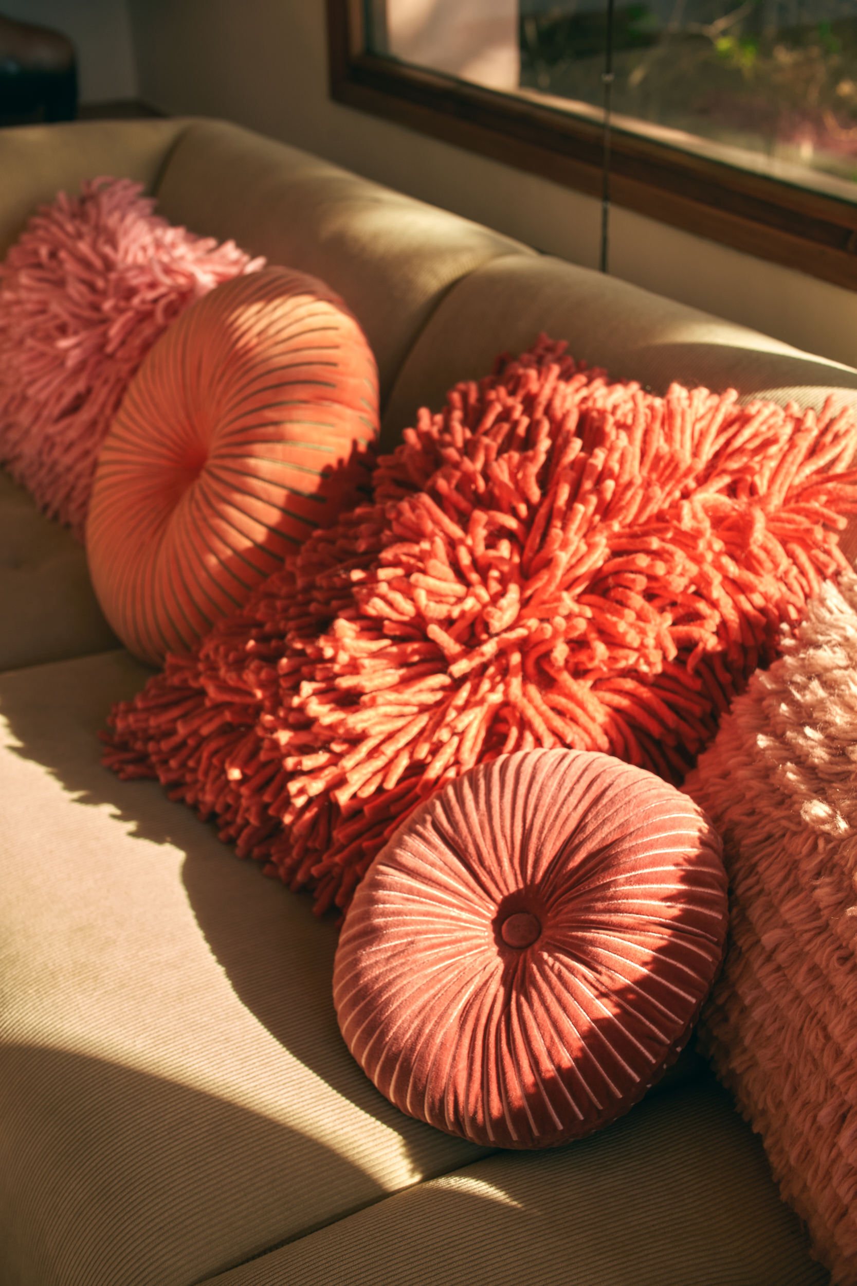 The soft, velvety fabric offers a luxurious feel, while the button-tufted center adds a refined detail. Perfect for adding a pop of colour and texture to your sofa, bed, or favourite chair, this cushion combines comfort and style in a unique, eye-catching shape.