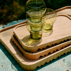 A practical essential with subtle character. This medium serving tray is made from warm brown wood veneer and features rippled edges for a refined twist. Its minimal shape and anti-slip surface make it ideal for everyday use—functional, tactile, and effortlessly stylish.