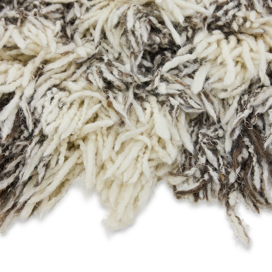 This shaggy rug plays with contrast in the most tactile way. From a distance, the checkered pattern feels graphic and composed; up close, the long, irregular fibres soften the geometry and add depth and movement. The mix of tones and textures gives the rug a layered look that feels both considered and instinctive.