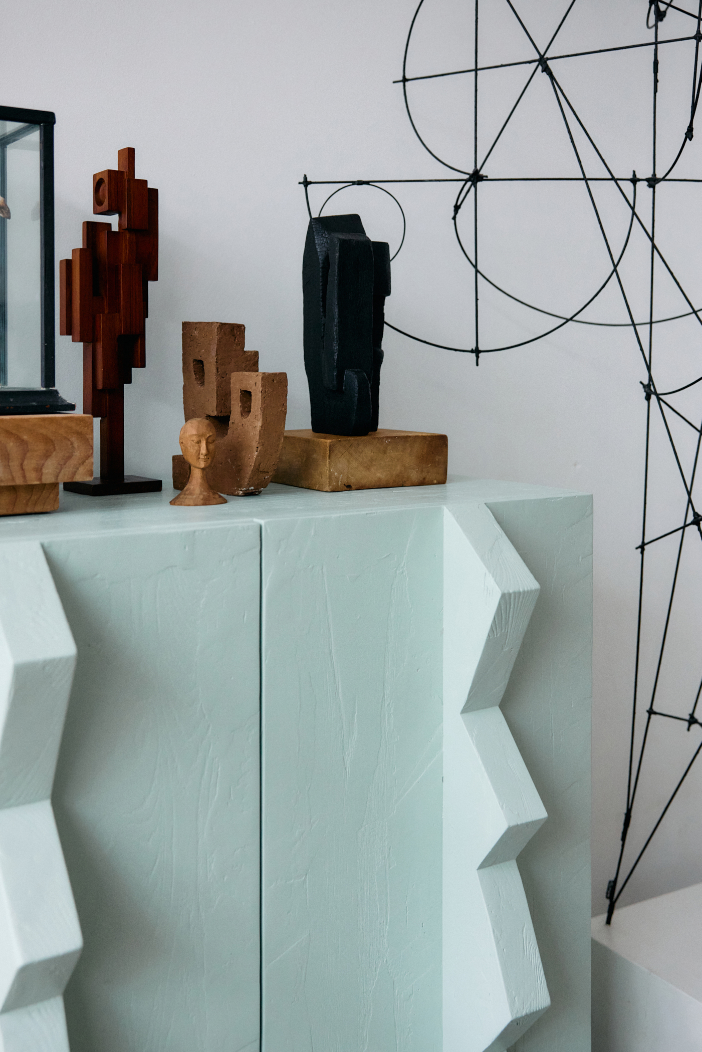 With its brutalist form and playful composition, this ornament is a striking accessory inspired by the skylines of the city. Available in different sizes and variations, all made from teak wood.
