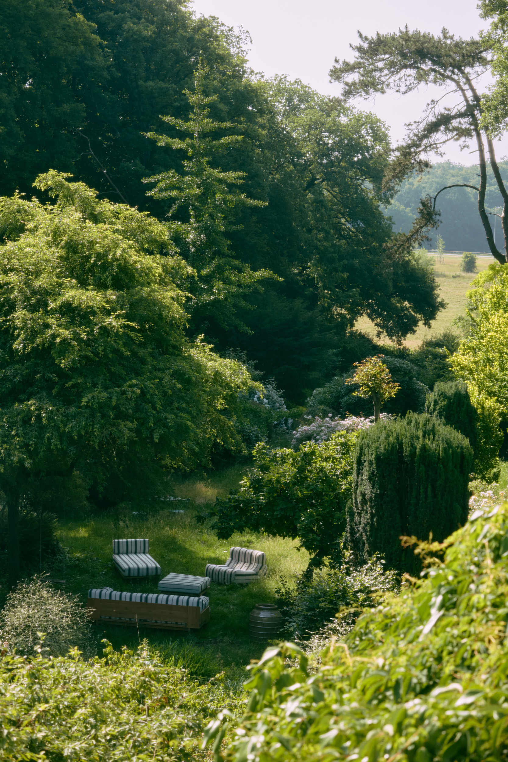The outdoor benches and daybeds are designed to integrate effortlessly into a natural landscape or urban setting. Intended to be used over a longer period of time and become more beautiful over the years. Its clean teak wooden frame embraces the comfy sofa cushions, creating a lovely lounge spot.