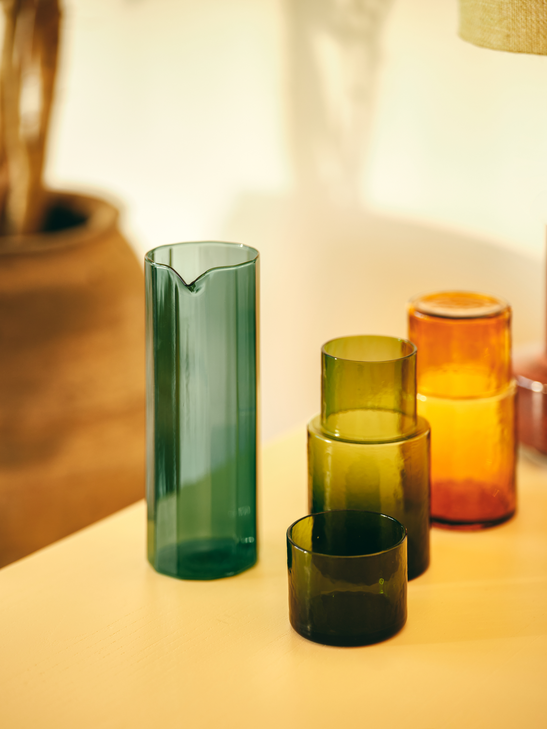 Add a vibrant touch to your table with this teal coloured glass carafe. Featuring a sleek, elongated design, this Sunlit carafe is perfect for serving water, juice, or your favourite beverages. The cool teal hue brings a pop of colour to your dining experience, while the sturdy glass construction ensures durability. Whether you're hosting guests or enjoying a quiet meal, this carafe combines practicality with a bold, modern aesthetic.