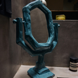 Rooted in the familiarity of a classic dressing table mirror, this piece reinterprets tradition through contrast and proportion. Clean lines meet expressive detailing, giving the mirror a distinct personality rather than a purely functional role. Designed to sit confidently on a table, dresser or shelf, it reflects more than just a face — it reflects an attitude toward design that values character over convention.