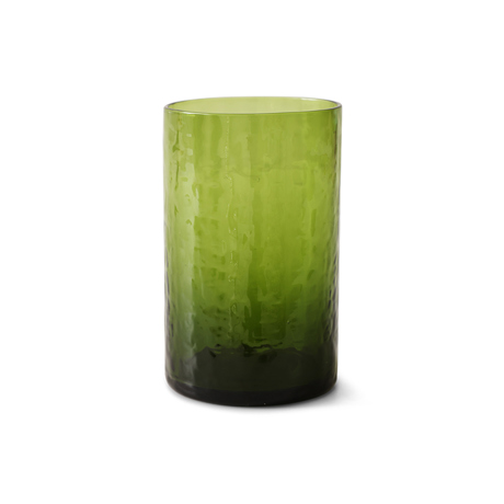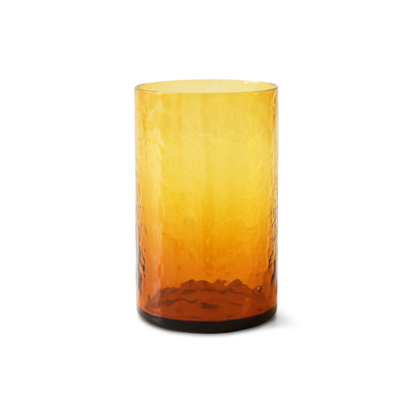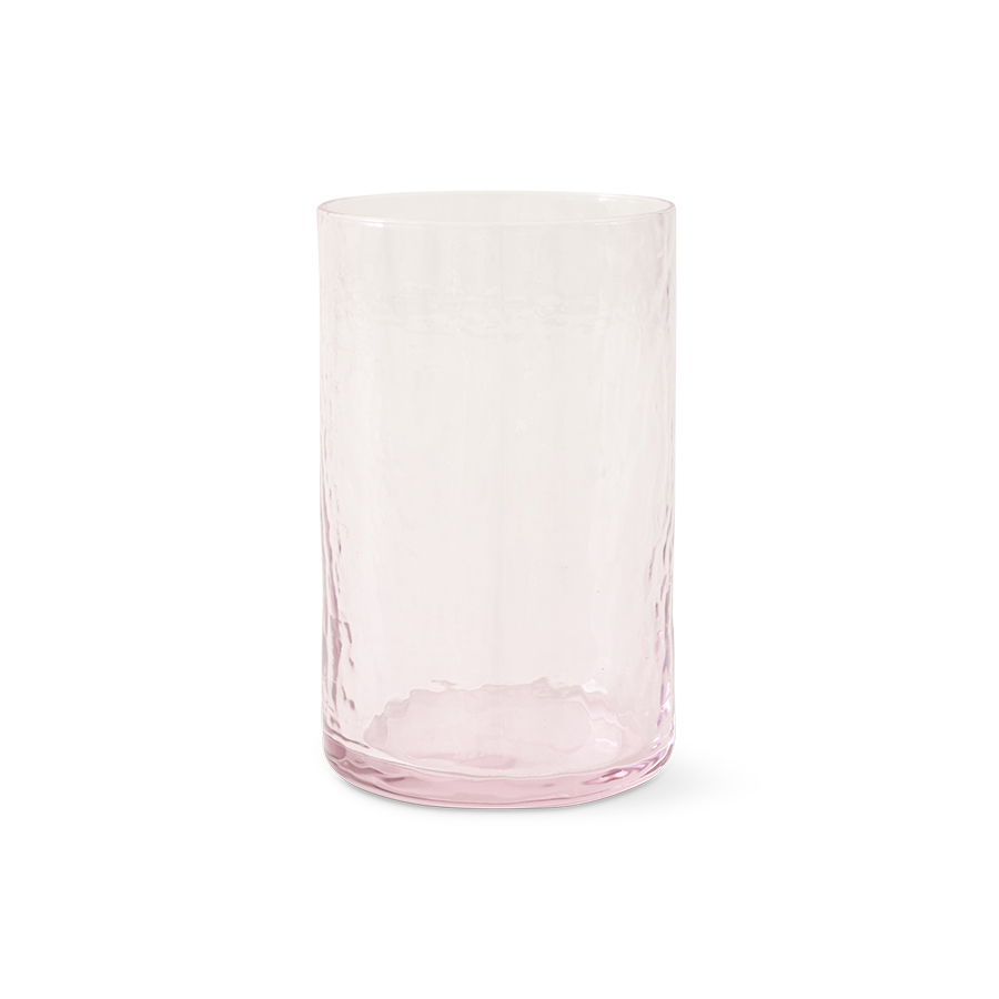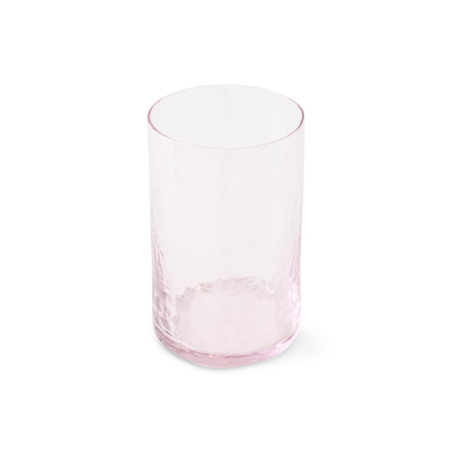 This tall tube glass builds on the signature style of the collection — coloured glass with a subtly uneven surface that catches the light in all the right ways. Its generous, cylindrical shape feels bold yet refined, perfect for long drinks or sparkling water. Pairs beautifully with the lower glass and carafe, but easily stands on its own.
