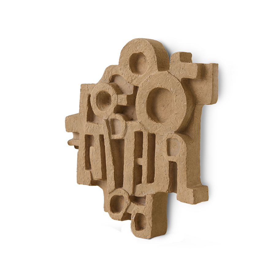 Crafted from heavy ceramic with a rough, tactile finish, this wall sculpture brings the spirit of the artist’s studio into your home. Inspired by the atmosphere of intimate ateliers and one-of-a-kind handmade objects, it makes a bold, sculptural statement on any wall.