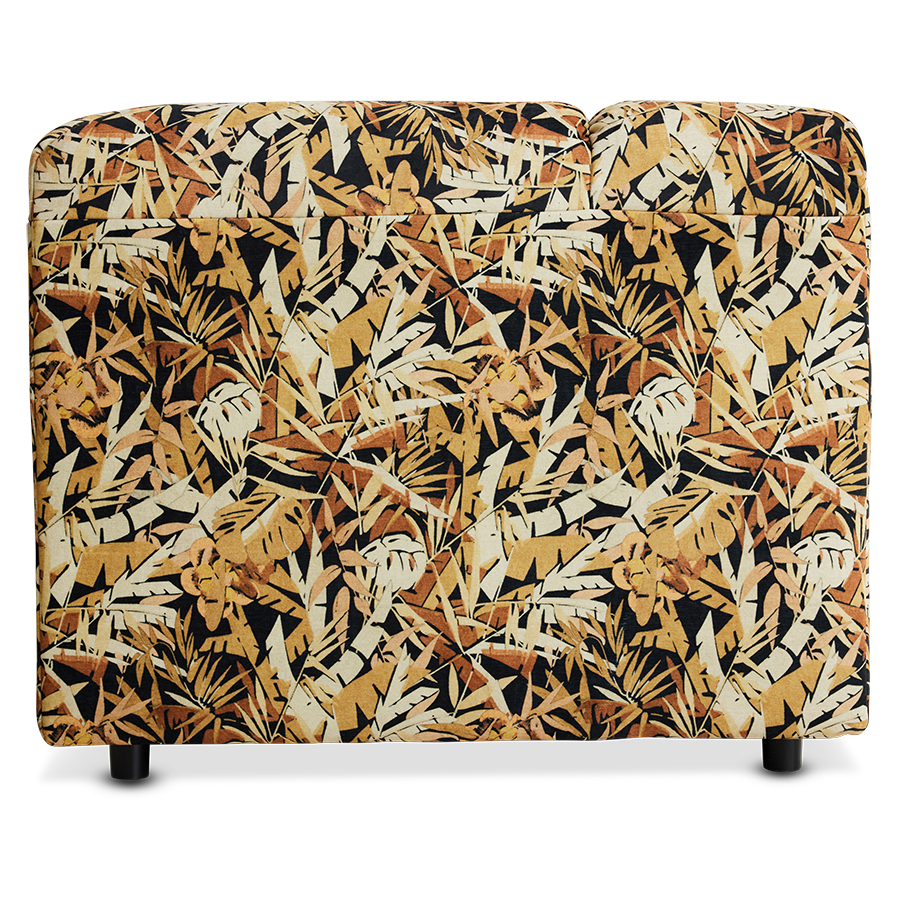 Inspired by the desire to lounge around from time to time, we have created a couch that is both multi-functional and contemporary. You're in charge and you can create the couch you want with our nine Wave couch elements. It has a slightly more active seat and can be combined with an inviting divan element. The overall shape of the couch can be traced back to Hollywood in the early 1970s and, thanks to its round curves, it will turn your living room into an inviting place to gather and relax. Get ready, because the couch comes upholstered in a special fabric that has only been designed for the Wave couch. The jungle print is for those who have a craving for richness and extravagance in their lives.