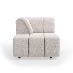 Inspired by the desire to lounge around from time to time, we have created a couch that is both multi-functional and contemporary. You're in charge and you can create the couch you want with our nine Wave couch elements. It has a slightly more active seat and can be combined with an inviting divan element. The overall shape of the couch can be traced back to Hollywood in the early 1970s and, thanks to its round curves, it will turn your living room into an inviting place to gather and relax.
