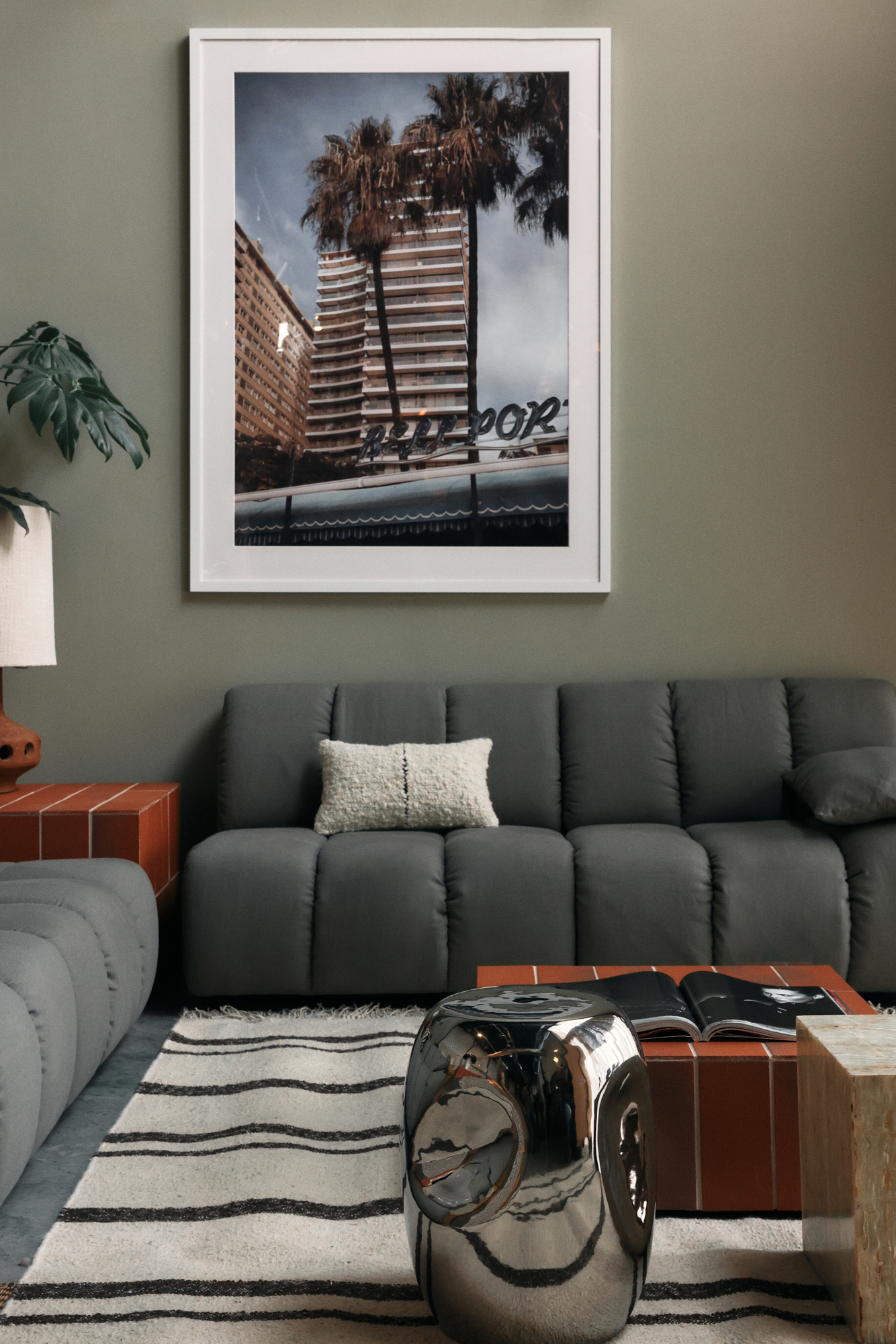 Wave couch: element middle, linen, army green