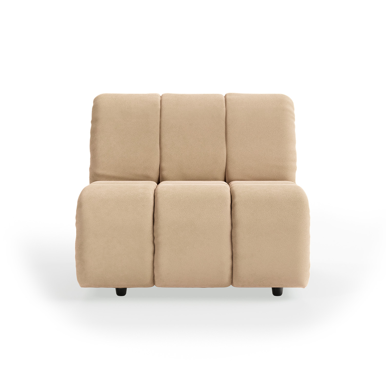 Inspired by the desire to lounge around from time to time, we have created a couch that is both multi-functional and contemporary. You're in charge and you can create the couch you want with our nine Wave couch elements. It has a slightly more active seat and can be combined with an inviting divan element. The overall shape of the couch can be traced back to Hollywood in the early 1970s and, thanks to its round curves, it will turn your living room into an inviting place to gather and relax.