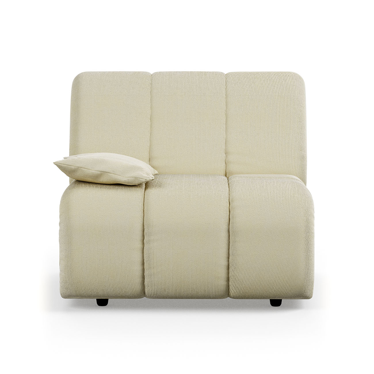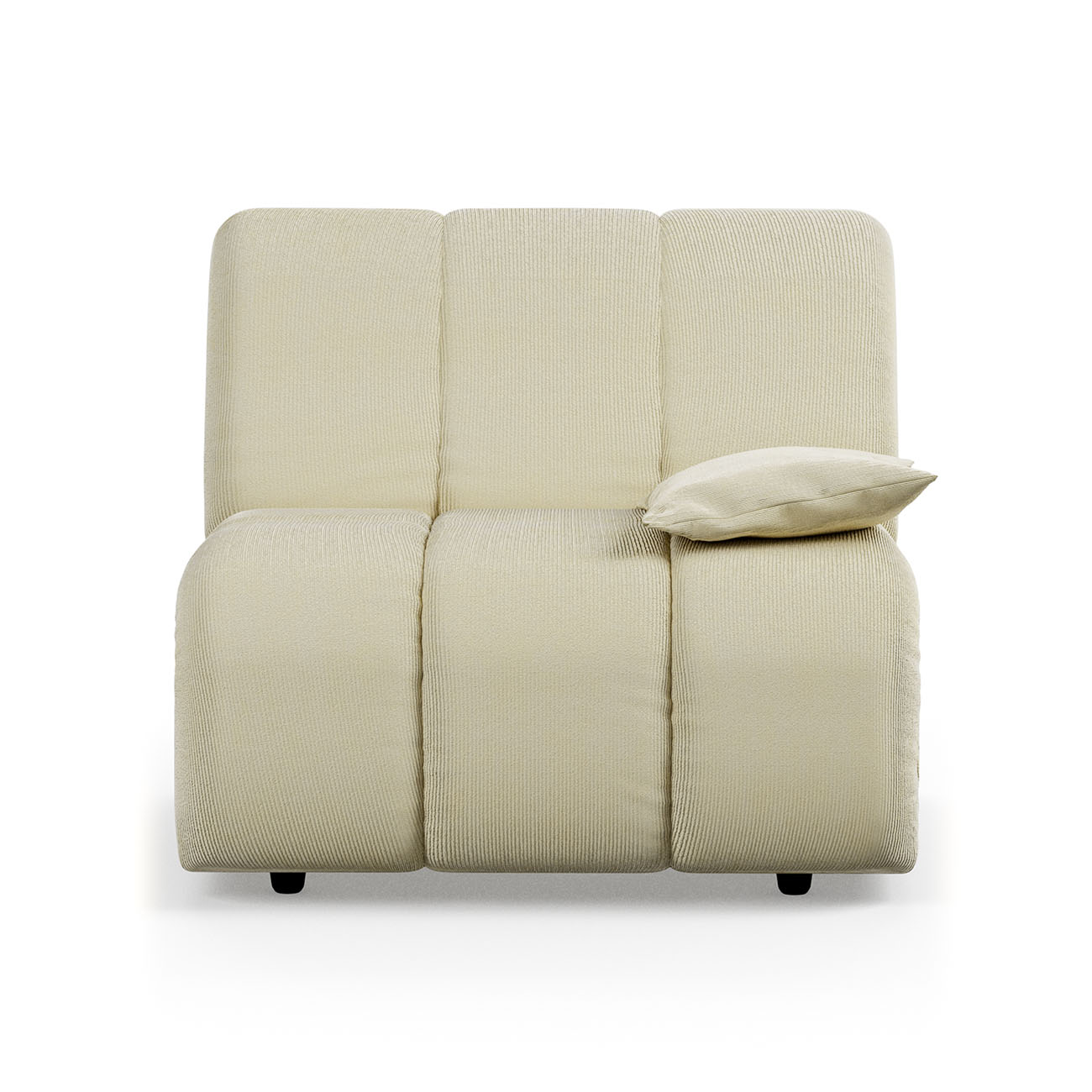 Inspired by the desire to lounge around from time to time, we have created a couch that is both multi-functional and contemporary. You're in charge and you can create the couch you want with our nine Wave couch elements. It has a slightly more active seat and can be combined with an inviting divan element. The overall shape of the couch can be traced back to Hollywood in the early 1970s and, thanks to its round curves, it will turn your living room into an inviting place to gather and relax.