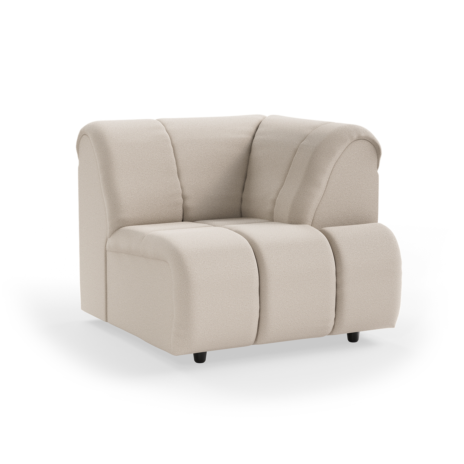 Inspired by the desire to lounge around from time to time, we have created a couch that is both multi-functional and contemporary. You're in charge and you can create the couch you want with our nine Wave couch elements. It has a slightly more active seat and can be combined with an inviting divan element. The overall shape of the couch can be traced back to Hollywood in the early 1970s and, thanks to its round curves, it will turn your living room into an inviting place to gather and relax.