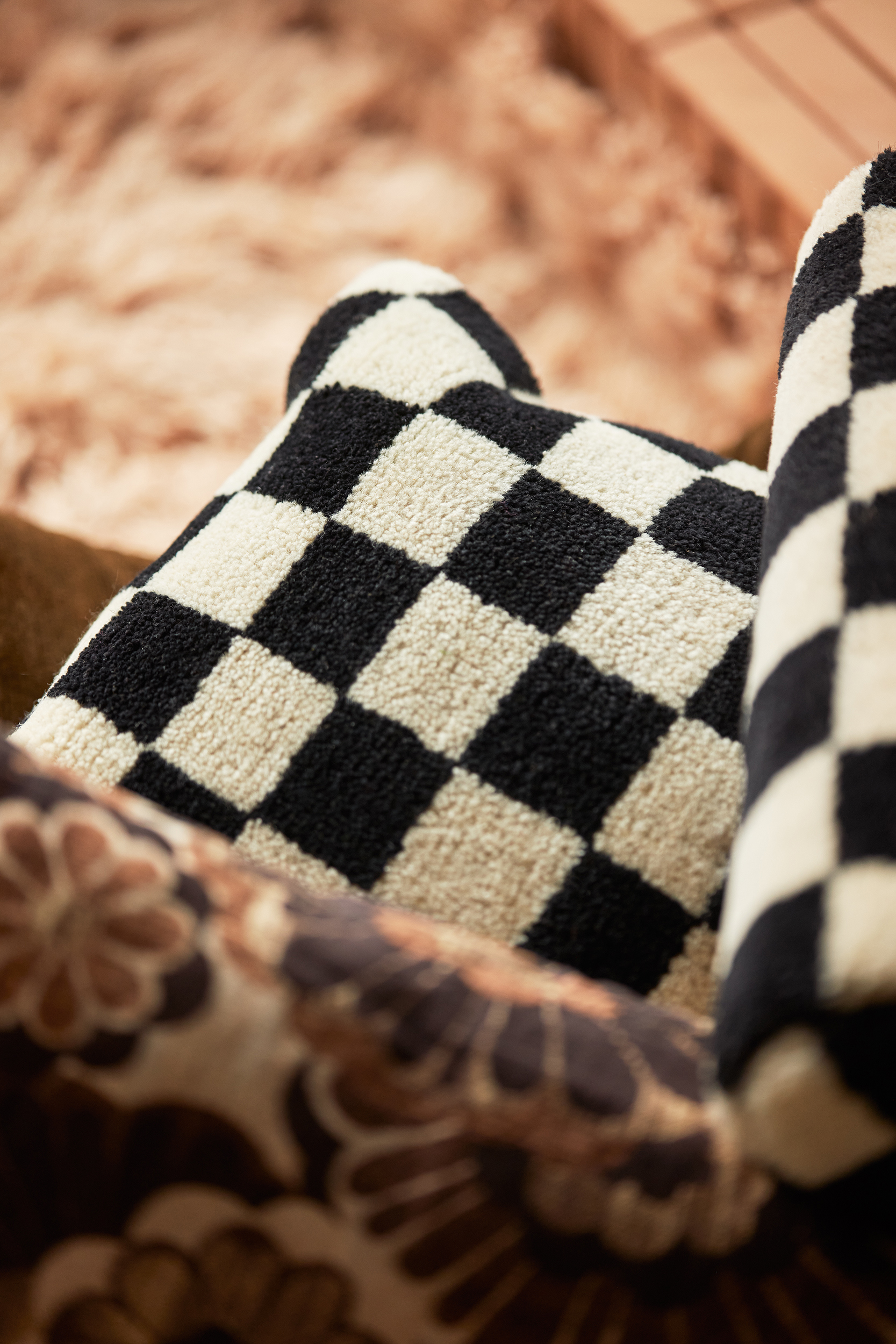 Besides the cool chequered print, this cushion is also a comfortable addition to your sofa. Thanks to its composition of chunky knitted wool and soft cotton, it makes it a durable decorative cushion.